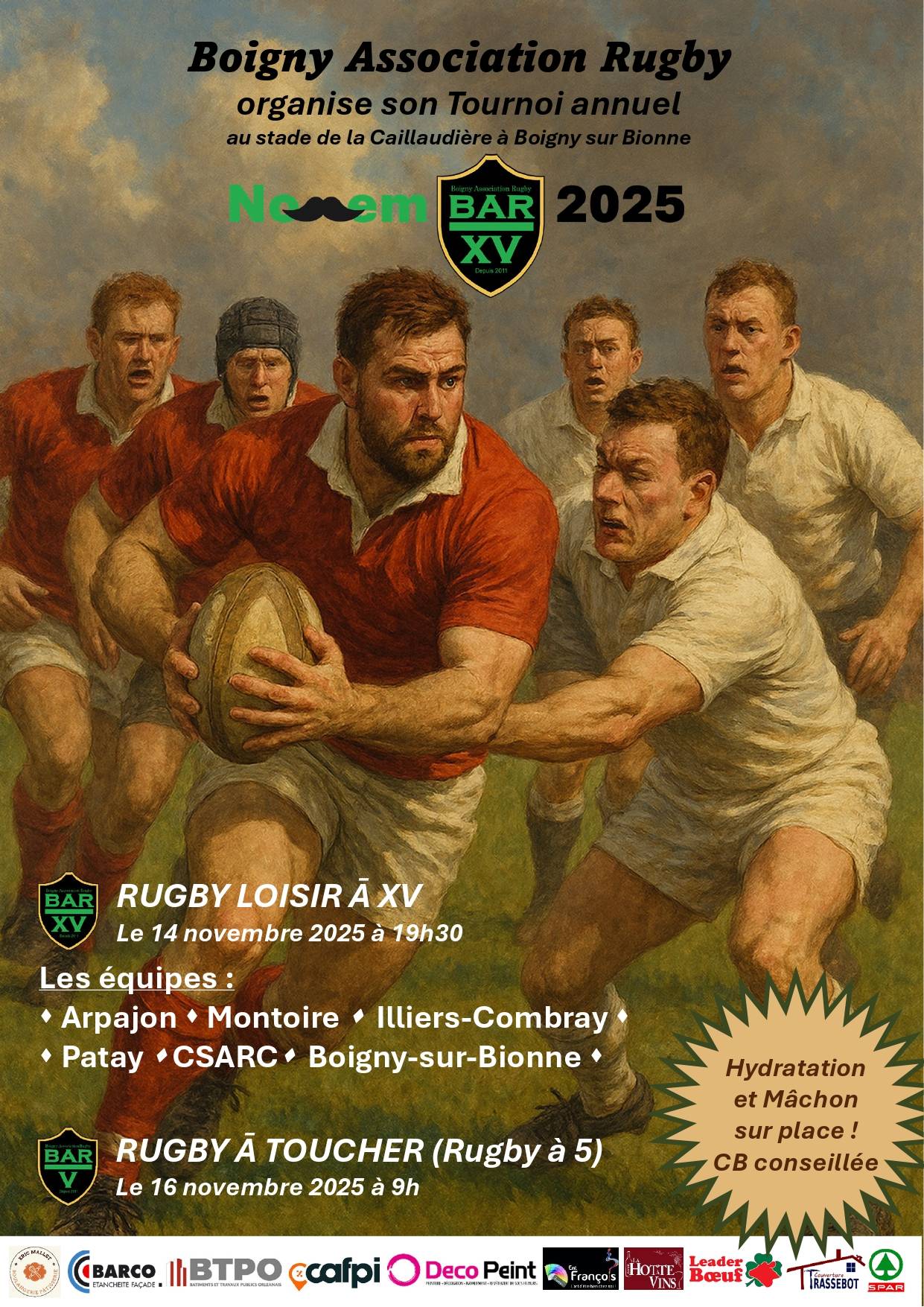 Le club de Rugby boignacien le B.A.R organise un tournoi le vendredi 14 novembre à partir de 19h30 plaine de la caillaudière. La buvette et la restauration sont prévues sur place.